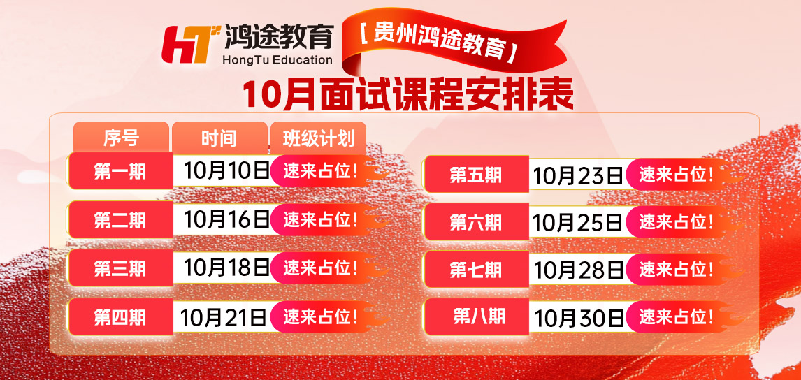②课程进度: 第一阶段:理论基础精讲,掌握面试核心考点内容,摸透面试考情;第二阶段:板块练习,熟练答题技巧,找回自信、会讲话、讲好话;第三阶段:考官视角模考集训对练,升华亮点、有逻辑、有干货;第四阶段:实战演练、查漏补缺、预测考题、一战上岸。第五阶段:真题练习,预测拔高,学至考前。
