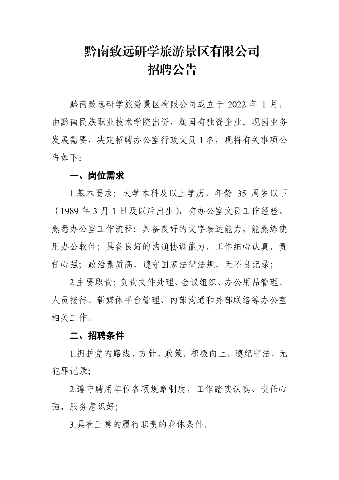 附件1:黔南致远研学旅游景区有限公司招聘人员报名信息表.doc(点击下载)