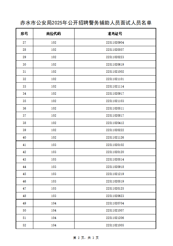 根据《赤水市公安局2025年面向社会公开招聘警务辅助人员公告》规定,现将面试有关事项公告如下。